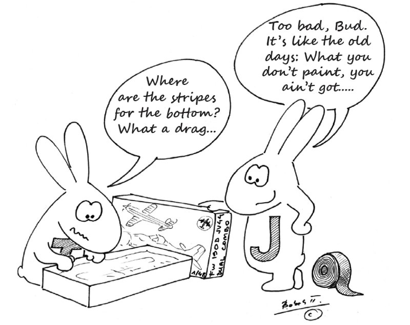 Da ist natürlich 'was Wahres dran, für mich bestätigt sich eher der „Sammler-Charakter“. Andererseits sind diese Streifen bei den Flugzeugen auch nicht einheitlich bzw. gleich. Ob Eduard mit den Angaben in der Bauanleitung so richtig liegt, muss ich mangels Material leider offen lassen. (Bauanleitung bei Eduard)