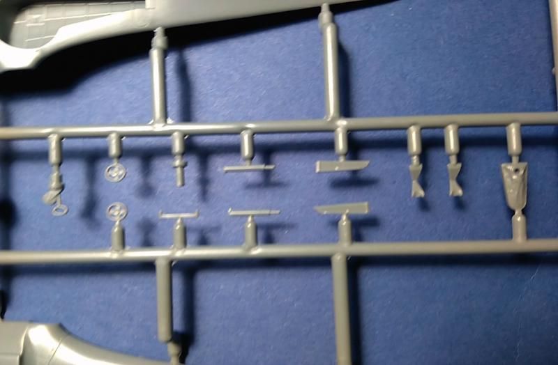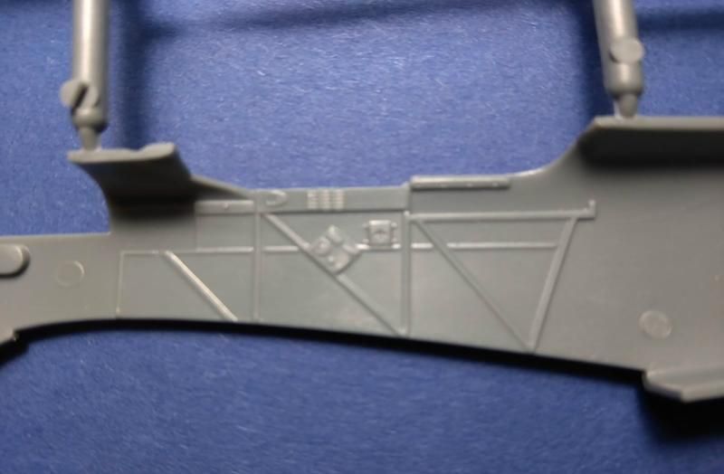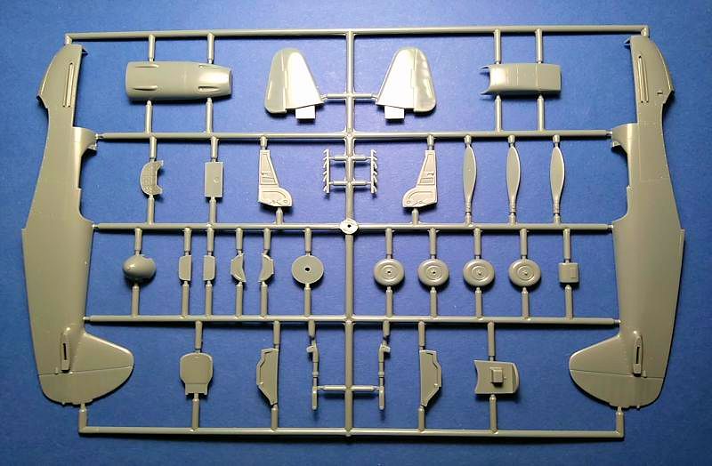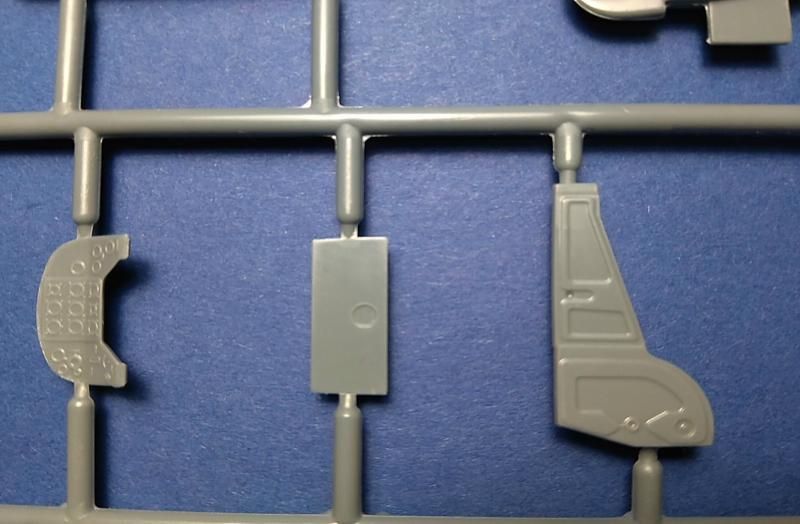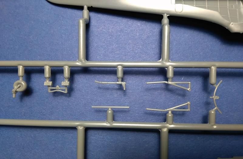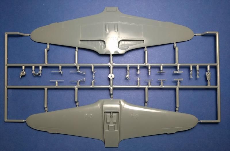 Bausatz: Der Kit besteht aus 52 Teilen aus dem üblichen mittelgrauen Plastik, sowie sechs Klarteilen an einem runden Spritzling. Die Formen stammen aus einer frühen Schaffensperiode von Eduard und entsprechen nicht dem derzeitigen Standard, sondern haben eher die Anmutung eines Short-run-Kits. Die Teile haben eine sehr glatte, glänzende Oberfläche und sind dem Vorbild entsprechend mit nur einigen wenigen versenkt ausgeführten Gravuren und Nieten versehen. Gußgrate, Sinkstellen oder Formversatz zeigen sich nicht an den Teilen, dafür gibt es aber einige ausgeprägte Auswerferzapfen, die vor dem Zusammenbau abgetragen werden müssen. Lokalisierhilfen fehlen, beim Zusammenbau muss also auf die korrekte Passung der Teile besonders geachtet werden.