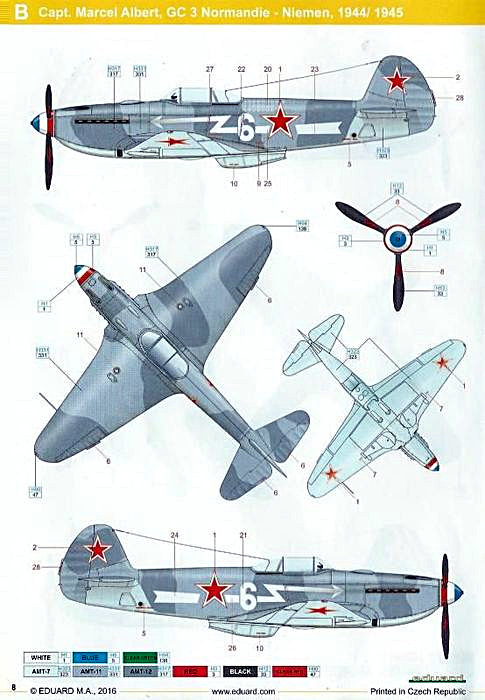 Fazit: Wer wie ich schon immer eine Yak der Normandie-Njemen-Gruppe besitzen wollte, erhält hier einen guten Basiskit und interessante Decals zum fairen Preis. Ob der Kit Fehler im Rumpfumriss hat, wie mancherorts im Netz behauptet, kann ich nicht beurteilen, allzu schlimm können sie aber nicht sein. Natürlich hält dieser alte Kit einem Vergleich mit dem neuen Angebot von Zvezda was die Detaillierung angeht nicht mehr stand, aber er stellt immer noch eine preiswerte Alternative zum Angebot der Russen dar. Sehr zu empfehlen!