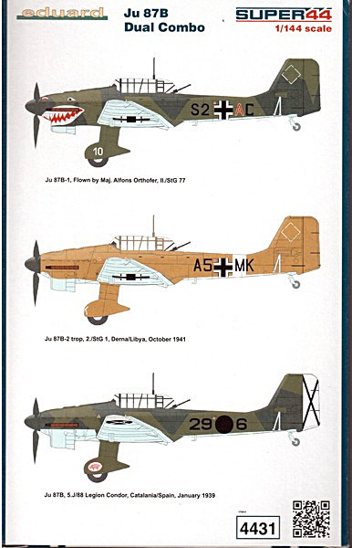 Modell: Nachdem im Frühjahr die Ju 87G als Wiederauflage erschien, ist nun auch die B Version erhältlich als Dual Combo mit zwei Modellen. Die Version typischen Merkmale für die Ju 87B wurden berücksichitgt. Die Qualität der Abspritzung und auch der Gestaltung der Oberfläche kann auch sich nach wie vor sehr sehen lassen.