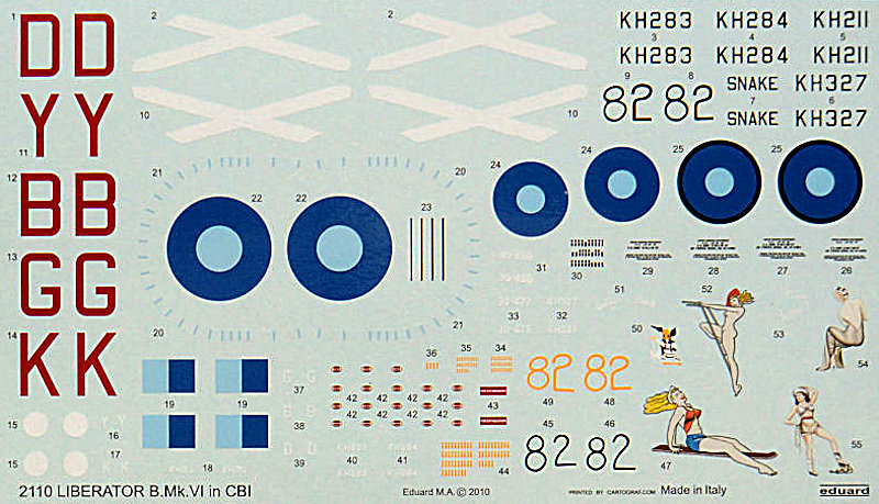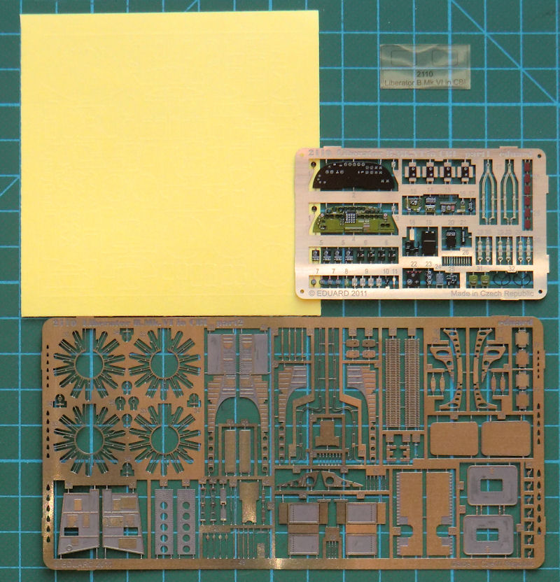 Bausatz: Hierbei handelt es sich um ein interessantes Upgrade des bekannten MINICRAFT-Bausatzes mit neuen Decals, Fotoätzteilen, Masken und Bauanleitung. Es können aus dem Kit B-24 Block 86, 90 und 91 aus dem Werk Forth Worth gebaut werden, die bei der RAF zu Liberator B.Mk. VI wurden.