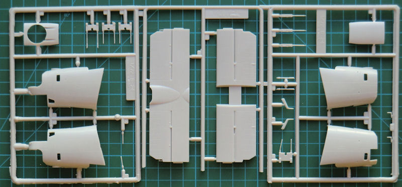 Im stabilen attraktiven Stülpkarton befinden sich gut sechs hellgraue Spritzgussrahmen mit 106 Teilen, drei Klarsichtrahmen mit 26 Bauteilen, zwei Bögen Fotoätzteile, eine kleiner Fotofilm, Masken, ein Decalbogen sowie eine sehr übersichtliche Bauanleitung.