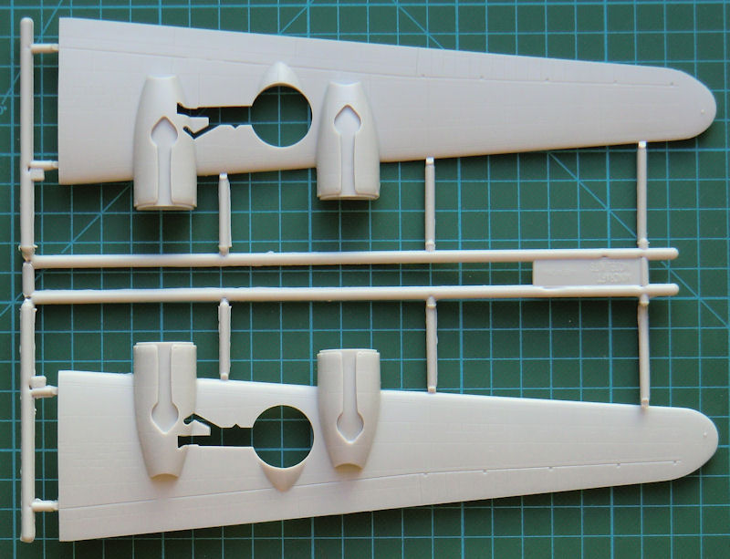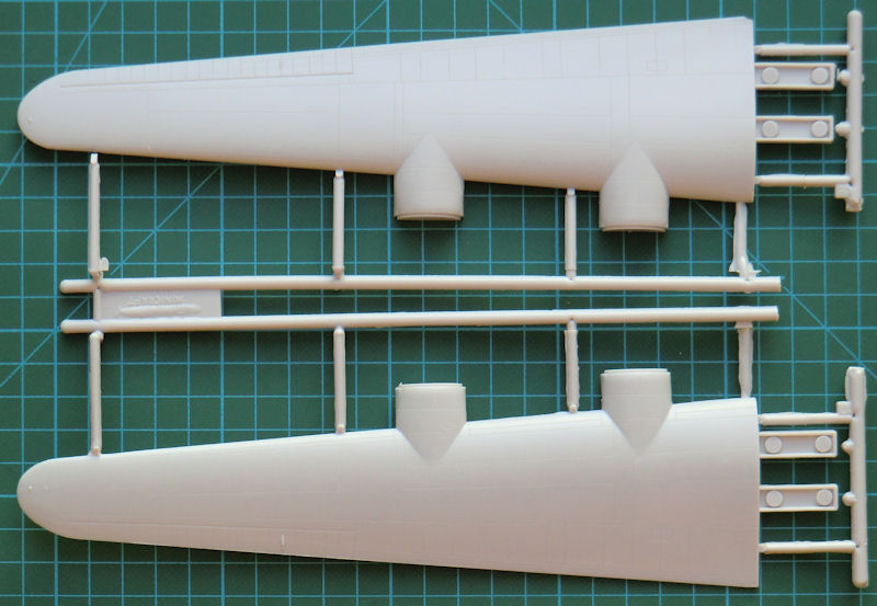 Der MINICRAFT-Bausatz stammt noch aus der Zusammenarbeit mit ACADEMY und entstand Anfang der 90er Jahre des vorigen Jahrhunderts. Die Strukturen sind meist fein versenkt. Mit den Kunststoffteilen bekommt man schon eine solide Ausstattung hin. Dank der beiden Fotoätzteilbögen, von denen einer mehrfarbig bedruckt ist, bekommt man eine zeitgemäße Detaillierung gezaubert. Neben den farbigen Instrumentenbrettern gibt es bedruckte Sitzgurte, Armlehnen für die Pilotensitze, Visiere für die Abwehrwaffen und viele Kleinteile für das Innere. Nicht vergessen hat man auch die Munitionsgurte und deren Kisten. Für die Motore gibt es Verkabelungen aus Fotoätzteilen. Auch die Fahrwerksschächte sowie das eigentliche Fahrwerk werden damit weiter detailliert. Der Bombenschacht kann alternativ mit Abwurfwaffen bestückt und geöffnet gebaut werden.