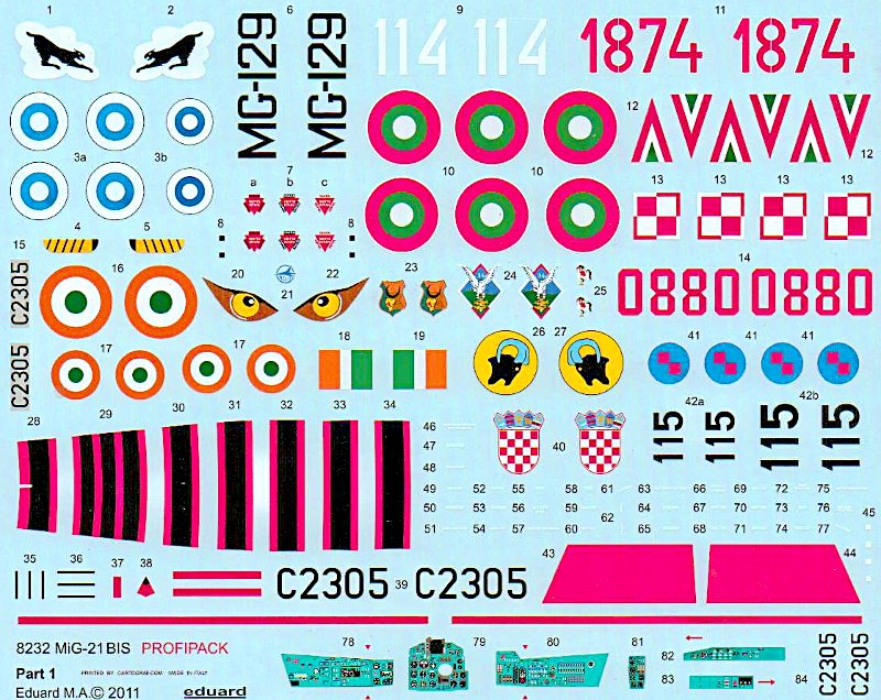 Für das Abschlussfinish werden in der Bauanleitung sechs farbig gedruckte Dekomöglichkeiten angeboten. Allerdings muss man sich die bulgarische Version von der Eduardseite herunterladen. Die Wartungshinweise fallen nicht so üppig wie bei der MF aus, da sie sich aber im Laufe des Einsatzes am Flugzeug sowieso verringern ist das auch o.k.