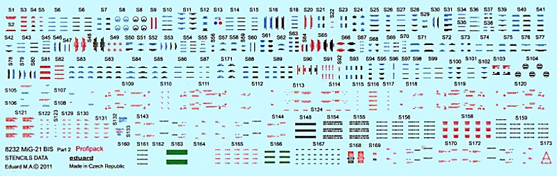 Bausatz: Eduard setzt konsequent seine Serie der späten Versionen der MiG-21 fort. Der Kasten ist mit gut verpackten acht grauen und einem Klarsichtrahmen mit ca. 410 Teilen (von denen für die BIS nur ca. 370 gebraucht werden), zwei Platinen (für Triebwerk und Cockpit), zwei UB-16 der Brassinserie und zwei große Decalbögen proppen voll.