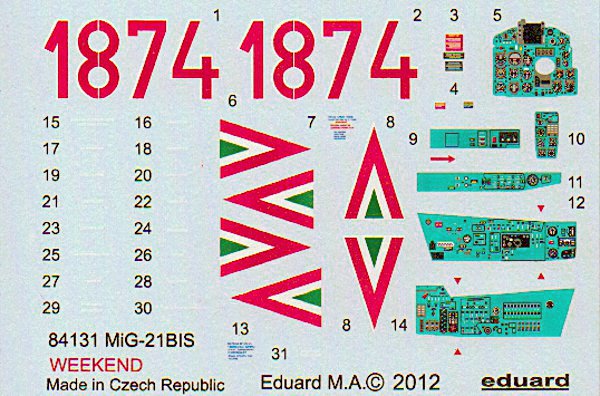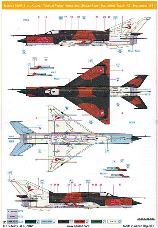 Für das Abschlussfinish wird der Serie entsprechend nur eine Dekomöglichkeit angeboten, Die Decals für MiG-21BIS, Nr.1874, Republik Ungarn, 2.Staffel des 31. Jagdgeschwaders, 1991 befanden sich auch im Profipack.