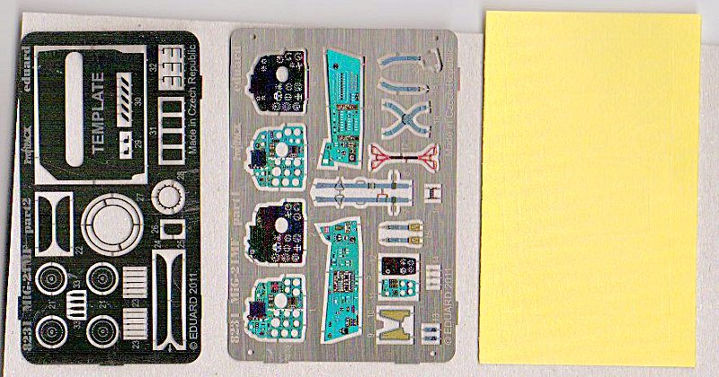 Das Cockpit besteht aus ca. 20 Teilen und kann sowohl konventionell als auch mit bedruckten Ätzteilen gestaltet werden. Das Instrumentenbrett ist exakt eine MF. Der Schleudersitz (ebenfalls ca. 20 Teile) ist ausreichend detailliert, wer möchte kann ihn natürlich durch einen Resinsitz ersetzen. Der Fahrwerkbereich schlägt alle Mitkonkurrenten mit seiner Detailfülle auch ohne Ätzteile aus dem Feld. Beim Triebwerk unterscheidet sich das sehr gute des Bausatzes von der Superduperausführung durch die fehlende Gestaltung der Außenwand, denn dann könnte man es im gezogenen Zustand zeigen. (He Detailierungsfreaks ran ans Werk oder ein Tip für Brassin). Für das Kabinendach liegen die bewährten Eduardmasken bei.