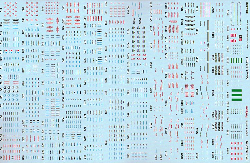 Für das Abschlussfinish werden in der Bauanleitung sechs farbig gedruckte Dekomöglichkeiten angeboten, die durch eine Seite für die Wartungshinweise ergänzt werden. Bei diesen ist aber zu beachten, dass sie sich ihre Anzahl im Laufe des Einsatzes am Flugzeug verringerte.