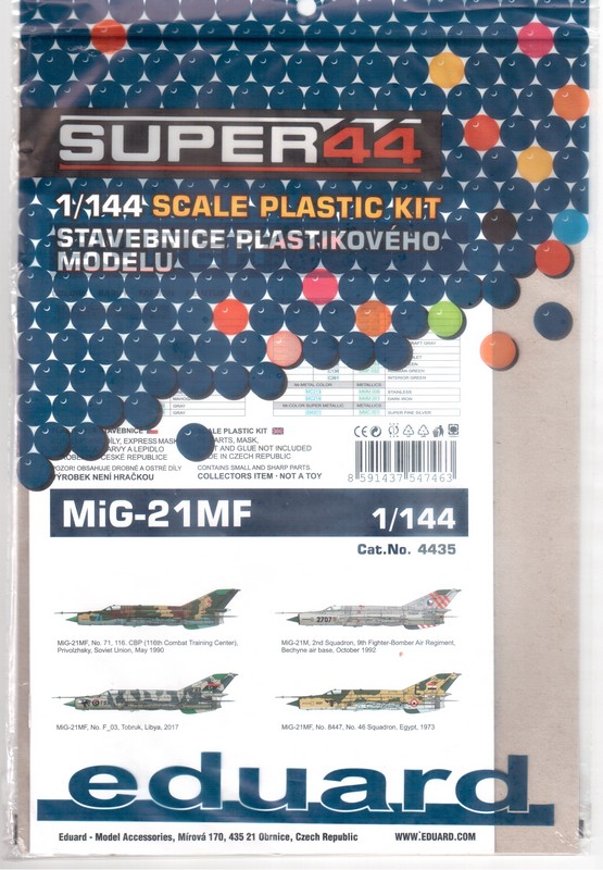 Bausatz: Bausätze der MiG-21 kann man durchaus als Referenz von eduard angeben. So bietet doch der tschechische Hersteller in seinem Programm fast alle Versionen in 1:48, 1:72 und auch 1:144 an. Im ganz kleinen Maßstab kam die MiG-21MF erstmals 2011 in der damaligen Doppelbox als Bausatz auf den Markt. Zwischendurch gab es ihn auch als "Eintrittskarte" beim E-DAY als Bunny Fighter oder in der hier auch vorgestellten Doppelbox mit Maschinen aus der Tschechei, Slowakei oder Tschechien. Nun wird er in dem neuen Format der Tüten-Kits neu aufgelegt.