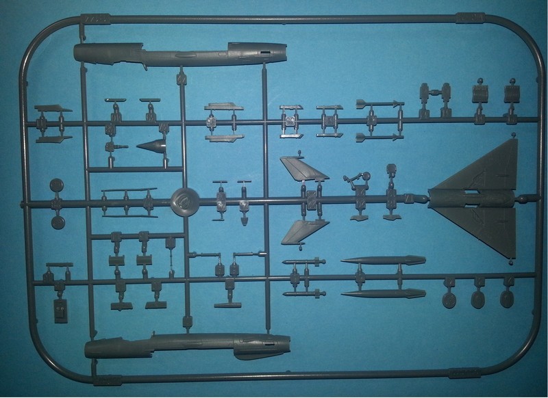 Gegenüber der Erstauflage hat sich an den Teilen nichts geändert, was aber auch nicht notwendig ist. Die eduard Bausätze der 21 in 1:144 zählen doch ohne Zweifel zum Nonplusultra. Dies sieht man an der Qualität und dem Detailreichtum der Bauteile. Des Weiteren findet man auch im Netz und auf Ausstellungen immer wieder zahlreiche gebaute Modelle. Die verschiedenen Versionen werden dabei über die separaten Teile für das Seitenleitwerk und den Rumpfrücken abgebildet. An den Spritzlingen konnte ich keine Alterungserscheinungen feststellen. Der Kit bietet zahlreiche Optionen hinsichtlich des Cockpits wie offene oder geschlossene Cockpithaube, Darstellung des Instrumentenbretts und Seitenkonsolen durch Bemalung oder Decals. Wer will, kann hier auch zur weiteren Steigerung noch die hauseigenen Ätzteile verwenden. An Außenlasten gibt es zwei Zusatzbehälter sowie zwei Arten Raketen.