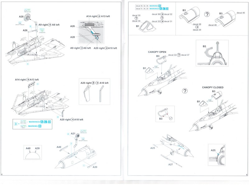Den Bau des Modells zeigt die hochwertige Bauanleitung auf insgesamt elf Seiten klar und deutlich. Die Farbangaben, welche auch für Detailbereiche gemacht werden, beziehen sich auf das Programm von Gunze und Mission Models. Interessant wird der Bausatz für Sammler und Modellbauer, welche sich einige MiG-21 in die Vitrine stellen wollen, natürlich durch die möglichen Bemalungsoptionen. So sind alle vier möglichen Optionen keine Wiederholungen aus früheren Auflagen.