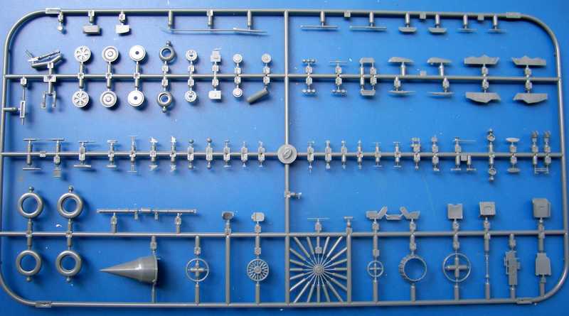 Das Cockpit besteht aus ca. 20 Teilen und kann sowohl konventionell als auch mit bedruckten Ätzteilen gestaltet werden. Das Instrumentenbrett liegt diesmal nicht als Klarsichtteil bei. Der Schleudersitz (ebenfalls ca. 20 Teile) ist ausreichend detailliert, wer möchte kann ihn natürlich durch einen Resinsitz ersetzen. Der Fahrwerkbereich schlägt alle Mitkonkurrenten mit seiner Detailfülle auch ohne Ätzteile aus dem Feld. Gleiches gilt für das Triebwerk. Für das Kabinendach liegen die bewährten Eduardmasken bei.