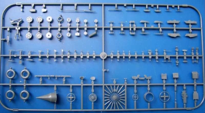 Die bekannten Rahmen E +F für die Außenlasten und Waffenträger werden nicht mitgeliefert. Man muss sich vor Baubeginn entscheiden ob es die PF, PFM oder R werden soll, denn die Rahmen C+D mit den "Kleinteilen" für Cockpit, Fahrwerk, Triebwerk etc. liegen nur einmal bei. Aber diese kann man ebenso wie E+F als Overtrees bei Eduard kaufen oder auf die entsprechenden Brassinteile zurückgreifen.