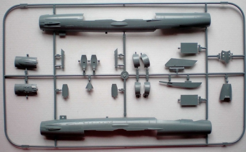Nun zu den Großteilen. Alle zeichnen sich durch feine Oberflächengravuren aus. Die Tragflächen haben die gewohnte Eduard Aufteilung. Das Seitenleitwerk macht einen stimmigen Eindruck. Alle Klappen und Ruder liegen als Extrateil bei. Die schlanke runde Rumpfform des Originals kommt gut rüber. Einige Teile liegen doppelt bei mit der Option der geschlossenen oder geöffneten Darstellung (z.B. Luftbremsen).