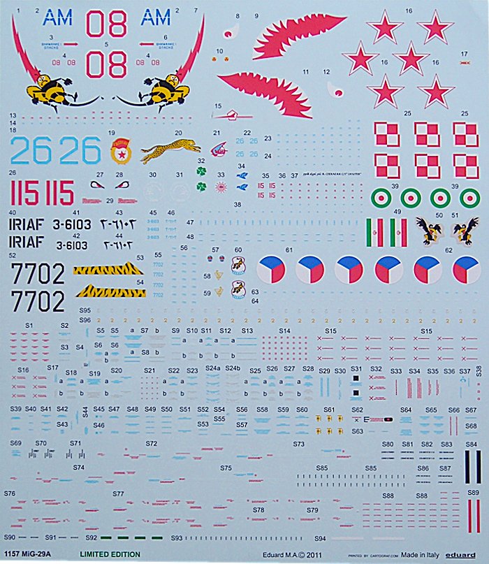 Decals: Ein weiteres Highlight der Limited Editions ist die Beigabe von mehreren interessanten Bemalungsvarianten. Die Nasschiebebilder sind wie immer bei den LE's von Cartograf produziert und von bester Qualität. Leider gibt es keine deutsche Bemalungsvariante, aber immerhin ist eine der Sowjetischen Maschinen der Westgruppe der WWS in Merseburg enthalten, aber hier die Bemalungsoptionen im Einzelnen: