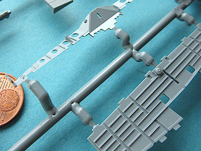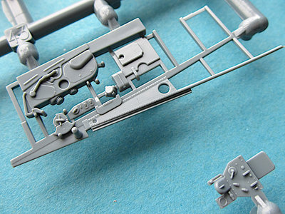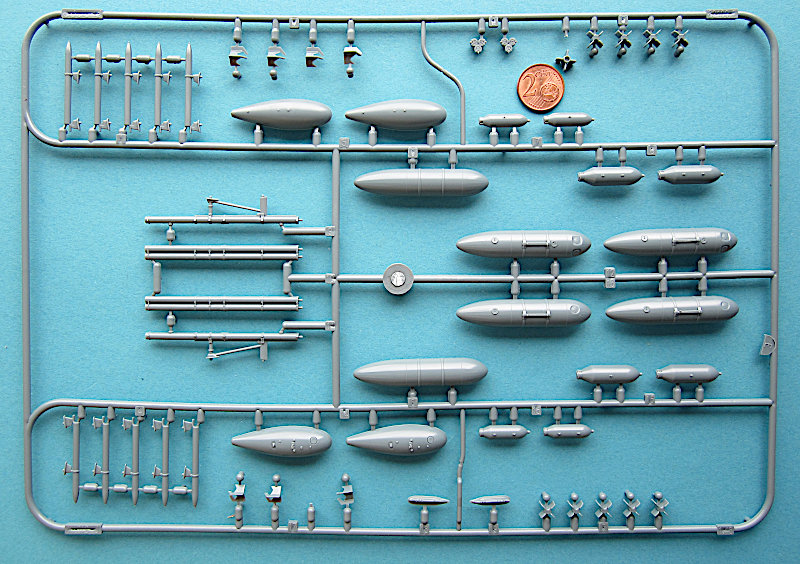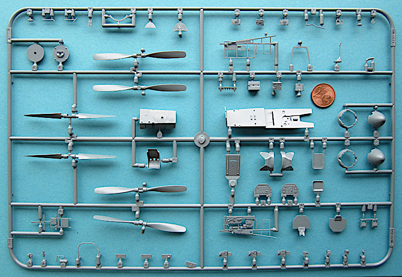 Ich bin gespannt wie stabil die Spornradaufhängung ist. Ich sehe hier eine größere Bruchgefahr. Zum Glück kann man diese Baugruppe spät ins Modell einbauen, ich würde nach der Lackierung empfehlen. Die Hauptfahrwerksreifen sind leider nicht zu gebrauchen. Das Rautenmuster lässt sich eben nicht so einfach in Spritzguss nachbilden. Eduard hat auch schon einen solchen Satz herausgebracht hoffentlich folgen auch noch einge der anderen Muster: Rillen, rechteckig, oval, oktagonal, quadratisch und gekreuzt. Diverse andere Firmen haben aber auch schon Räder im Programm.
