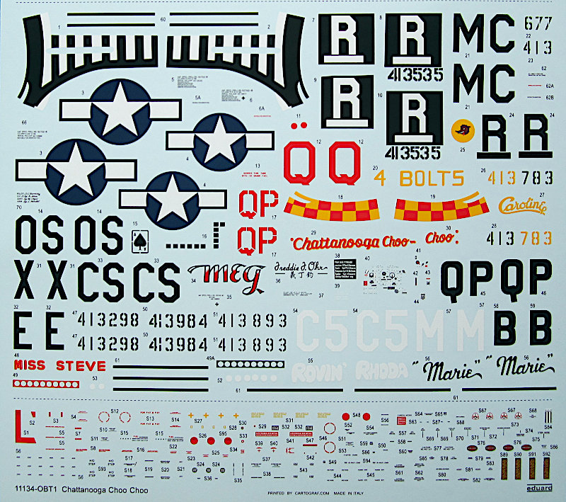 Bemalungsvarianten: Das erste Los von 3000 Bausätzen enthält Decals von Cartograf. Zur Qualität braucht man daher nichts weiter zu sagen. Wie hat Brett Green es so schön formuliert: die Eduard Decals sind auch sehr gut, aber die Cartograf Decals vermitteln das gewisse Gefühl von Luxus... allerdings finde ich den Bogen diesemal sehr eng bedruckt. Wer nicht sofort einen der 3000 Bausätze ergattert hat, muss nicht verzweifeln, denn Eduard hat schon das nächste Los in der Mache. Dann werden die Decals allerdings aus dem hauseigenen neuen Laserdrucker stammen. Ich bin echt gespannt wie diese neuen Decals abschneiden! Aufgrund der Rechtslage werden die Bausätze in einigen Ländern (so auch hier in Deutschland) nur mit verstümmelten Abschussmarkierungen auf den Markt kommen. Ein mehrteiliger Aufbau ist bei diesen kleinen Markierungen wohl nicht möglich.