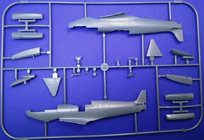 Die Glasteile sind dünn und klar. Während die Windschutzscheibe ein separates Teil ist, liegen für den Rest der Verglasung entweder eine separate Schiebehaube und das Rumpfrückenteil bei, oder, zum Bau der Haube im geschlossenen Zustand gibt es ein kombiniertes Hauben- und Rumpfrückenteil.. Alle Steuerflächen bis auf die Landeklappen sind separat nachgebildet. Beim Höhenruder gibt es ein gemeinsames Bauteil für beide Seiten mit einer durchgehenden Achse. Dies entspricht im Prinzip der Konstruktion des Originals und verhindert bei Hektikern wie mir, dass die Ruder auf jeder Seite anders stehen. Höhenleitwerk und -ruder gibt es außerdem mit schrägen wie mit geraden Ausgleichsflächen.
