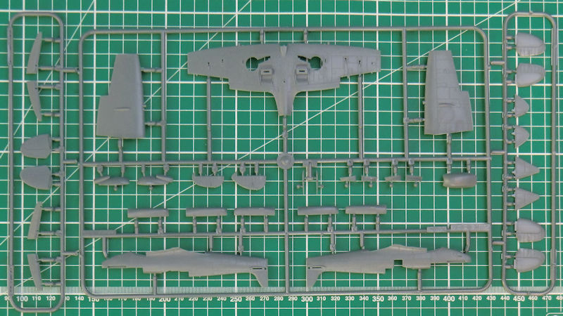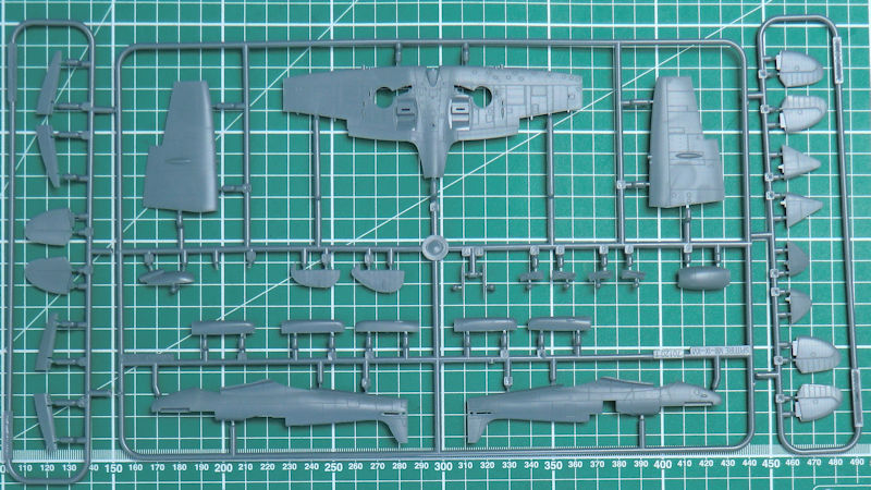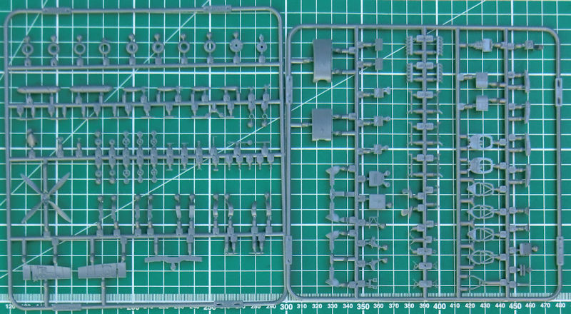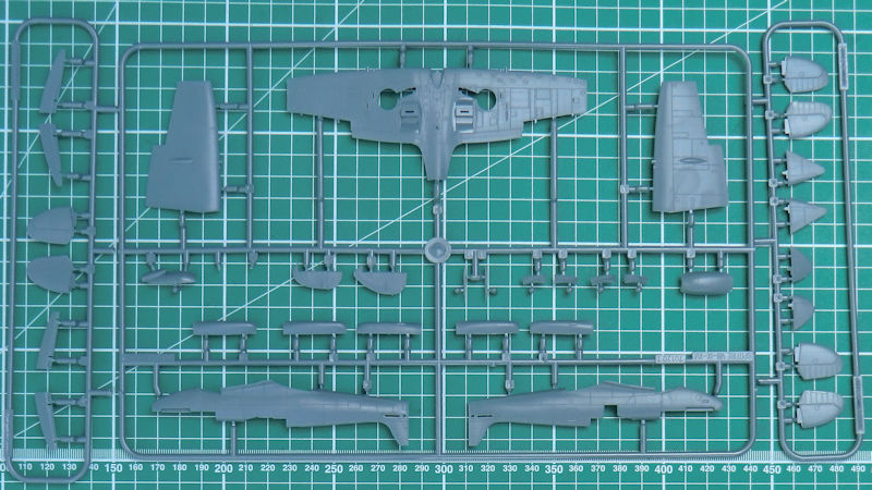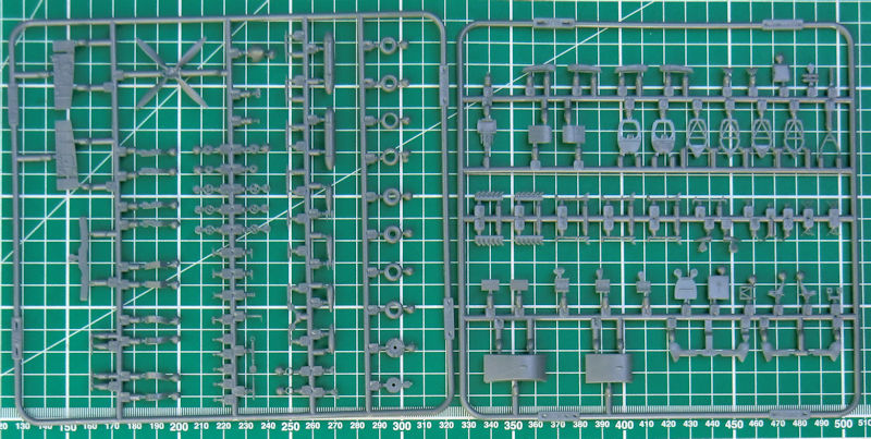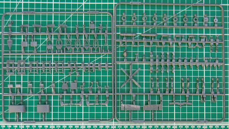 Schaut man sich die Bauanleitung und die Teile an, so stellt man fest, dass man drei verschiedene Varianten der Mk. IX bauen kann. Es gibt drei verschiedene Tragflächen. Die Abspritzung der Teile ist tadellos. Es gibt feine versenkte Strukturen und schöne Details.