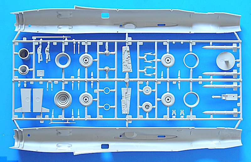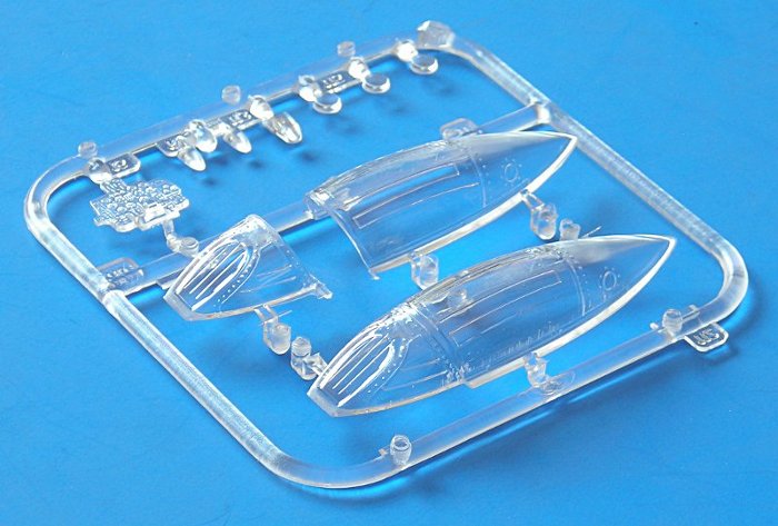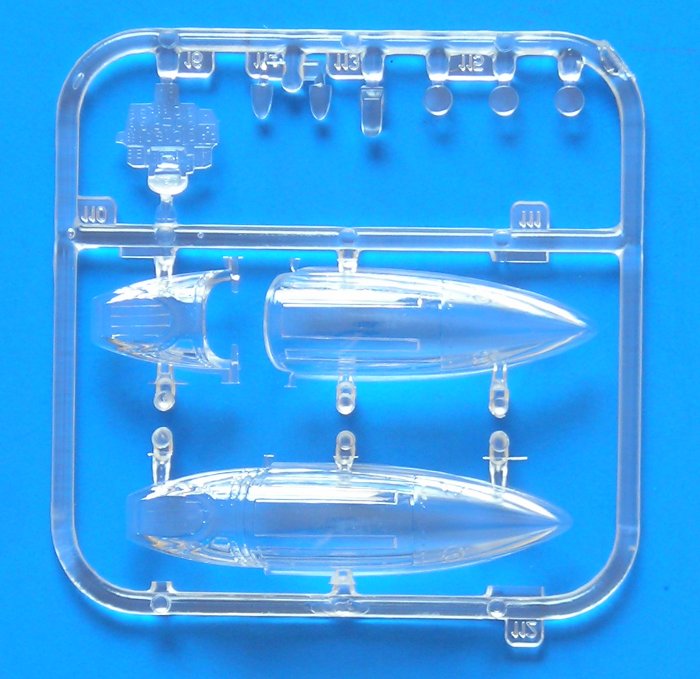 Bei den Plastikteilen, lässt sich das Alter des Werkzeugs natürlich nicht leugnen. Die die Gravuren entsprechen nicht dem heutigen Topniveau. Aber sie sind versenkt ausgeführt und die Abmessungen des Originals sind gut getroffen. Die Oberfläche hatte ich von den bisherigen Editionen als rauer/unebener in Erinnerung, da ich aber keinen älteren Bausatz vorliegen habe, kann ich mich da auch täuschen. Jedenfalls ist die Bausatzoberfläche in der Eduard-Edition ziemlich glatt. Allerdings gibt es bei meinem Exemplar einige leichte Einsinkungen (z.B. am Heck) und auch ein paar Flussmarken (vor dem Cockpit) … das kann aber den insgesamt positiven Eindruck dieser Edition nicht schmälern! Die Klarteile sind vergleichsweise dick, verzerren aber nur wenig. Mal sehen wie es nach einem Bad in Future/Klear aussieht.