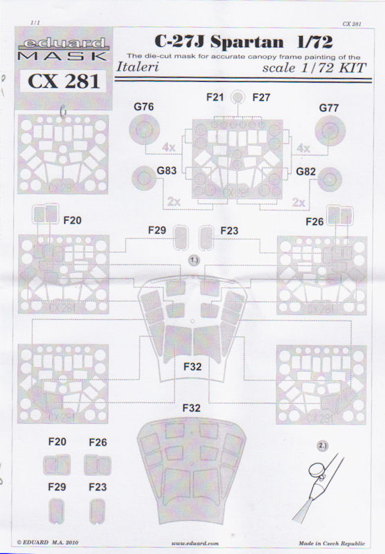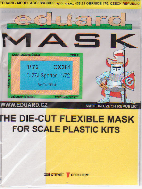 Für den Italeri Bausatz der Alenia C-27J Spartan hat eduard ein Maskenset herausgebracht. Es enthält einen gelben Bogen für Räder und Klarsichtteile des Bausatzes.