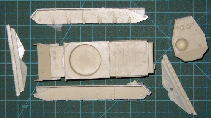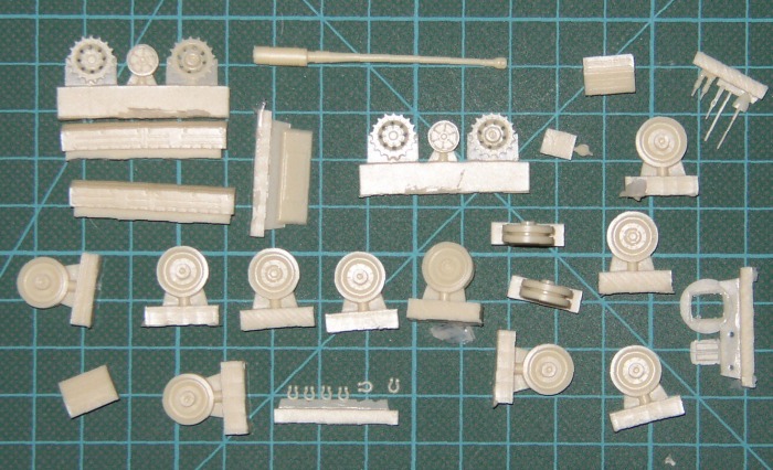 Bausatz: Hierbei handelt es sich wieder um einen typischen Multimedia-Bausatz von EXTRATECH. Gut gegossene Resinteile werden mit Fotoätzteilen kombiniert. Die Ketten bestehen aus Fotoätzteilen und müssen entsprechend Bauanleitung gefaltet werden. Es ist eine sicherlich nervenaufreibende Arbeit, jedoch dürfte das Ergebnis sehr realistisch sein. Die Resinteile sind gut verpackt und die Panzerwanne ist sehr komplex und blasenfrei gegossen. Selbst das Rohr der 17pdr., sonst bei Resinbausätzen ein Problem, kann überzeugen. Die Kommandantenkuppel kann alternativ offen montiert werden. Der Decalbogen ist gut und ohne Versatz gedruckt.