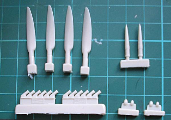 Alle Resinteile habe sehr kleine Angüsse und bestehen aus dem schon bei der Heinkel erwähnten, sehr guten Material. Das dem Set keine Räder beiliegen (die auch sehr schwer von den Sinkstellen zu befreien sind) ist KEIN Mangel. Hier gabe es nämlich mindestens 4 verschiedene Varianten (3, 4, 5-Speichen oder mit Radkappe) die bereits als Zubehör bei True Detais, Airwaves oder Ultracast erhältlich sind. Alle beizulegen würde nur den Preis hochtreiben. A propos Preis, dieser liegt im üblichen (leider recht hohen) Rahmen. Ich denke jedoch, dass er bei der vorliegenden Qualität gerechtfertigt ist und im Vergleich mit der Konkurrenz auch noch eher niedrig ist.