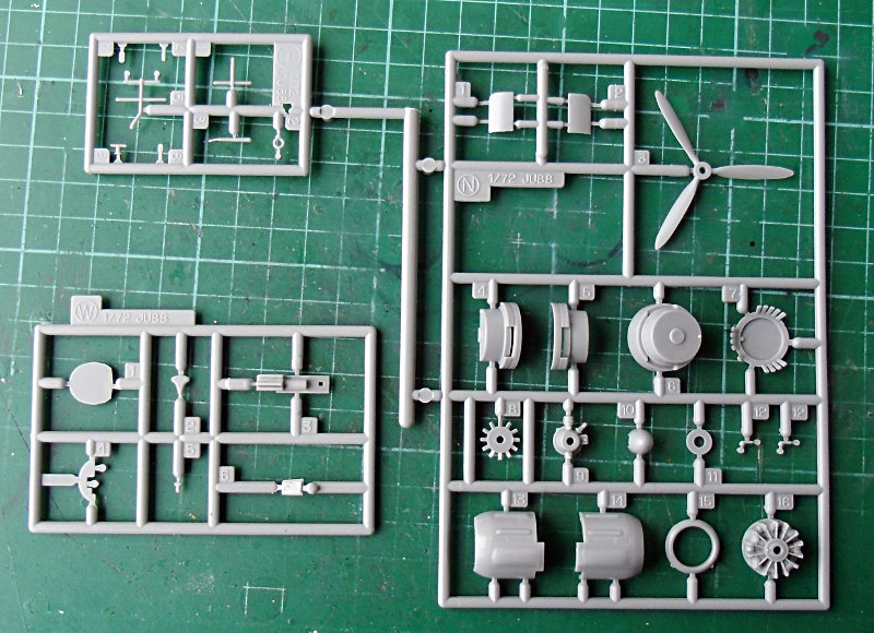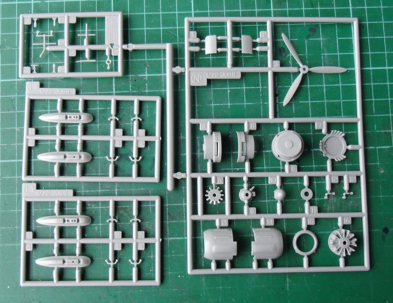 Bausatz: Der Bausatz der Ju 88 S ist fast identisch mit den anderen Bausätzen Ju 88 von HASEGAWA, es sind nicht nur die zusätzlichen Teile für die S-Version vorhanden, sondern auch viele Teile anderer Versionen. Gut für die Ersatzteilliste. Deshalb verweise ich auf die sehr ausführlichen Bausatzbesprechungen der Ju 88 auf unserer Internetseite. Die Qualität des Bausatzes ist hervorragend. Die Teile sind sauber und gratfrei gespritzt und passen sehr gut zusammen.