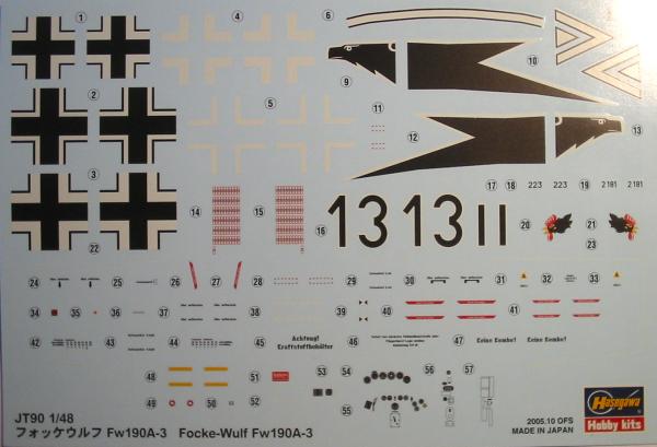 Aus der Kiste kann man eine Fw 190 A-2, A-3 oder A-4 bauen, wobei man aber Vorbildfotos zu der gewählten Bemalung konsultieren sollte. Die Kühlklappen liegen nicht bei und die frühe Kopfpanzerabstützung müsste man selbst herstellen. Die nur 2 Decalvarianten mögen wenig erscheinen, jedoch gibt es Abziehbilder zur Fw 190 wie "Sand am Meer", man muss sich nur entscheiden.