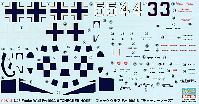 Fazit: Hasegawa liefert hier eine kleine Mogelpackung, aus der man zwar eine brauchbare Fw 190 A-6 baue kann, jedoch auf Zusatzmaterial angewiesen ist. Insbesondere eine Bauanleitung der Fw 190A-5 von Hasegawa wäre hilfreich.