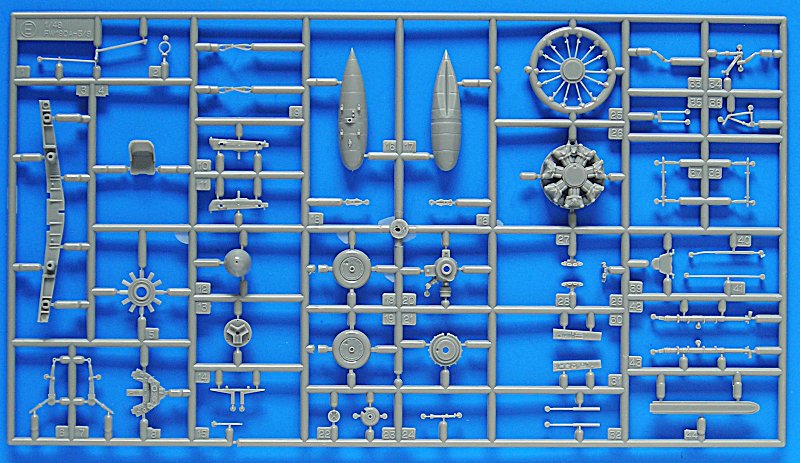 Viel kann man über die 190er Serie von Hasegawa nicht mehr sagen. Meiner Meinung nach stellt sie einen sehr guten Kompromiss zwischen der Baubarkeit des Tamiyakits und der Detailliertheit von Eduards Fw190-Reihe dar. Z.B. wid das Revi aus 3 Teilen aufgebaut, sicher etwas fummelig für meine Wurstfinger, aber bisher war es oft ein einzelnes Klarteil mit Gussgrat auf der Visierscheibe. Sehr gut gefällt mir diesmal die Modularität. Sie ist nicht übermäßig wie bei der P-40 erlaubt aber auch das "Mischen" der Teile. Ich brauche für meine Sammlung z.B. noch eine Fw 190F-3. Dafür habe ich mir kürzlich die Fw 190A-6 gekauft (Review folgt demnächst), die jetzt mit dem Waffenflügel der F-8 ausgestattet wird. Da alle Teile für die MG 151 Abdeckungen vorhanden sind, kann ich aus dem "Rest" noch eine vollständige Fw 190 A-8 erhalten. Einige Spritzlinge haben etwas Grat, aber die Teile sind größtenteils davon verschont (Ausnahme: Benzinfässer). Die Klarteile sind eben dieses; klar und schlierenfrei. Enthalten ist sowohl die Standardhaube, als auch die "Blasenhaube".