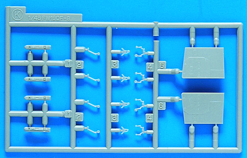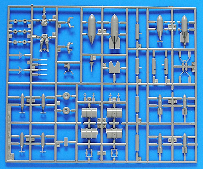 Bausatz: Nach Tamiya und Eduard ist jetzt auch Hasegawa bei der Schlachtflugzeugvariante der 190 gelandet. Die meisten Bauteile sind bekannt, aber es befinden sich auch weiter Teile im Set. Zum Einen ein Spritzling aus dem Luftwaffe Abwurfwaffen-Set, samt sitzendem Piloten. Außerdem der Spritzling K, der Teile für die glatt beplankten äußeren Waffenschächte und Bombenschlösser für die Flügel enthält.