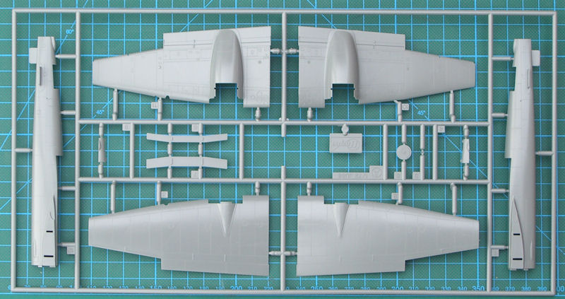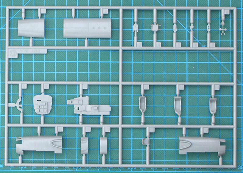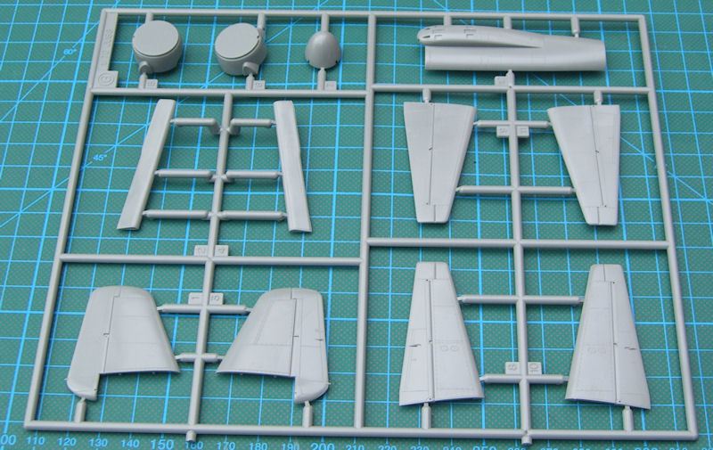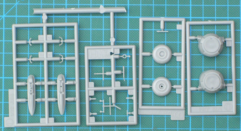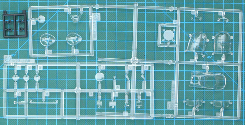 Die große Klarsichtkanzel ist in zwei Hauptbauteile aufgeteilt und schön durchsichtig. Zwei verschiedene Abwehrkanzeln gibt es auch noch. Der Anbau der Sturzflugbremsen erfolgt nur bei einer Bemalungsversion.