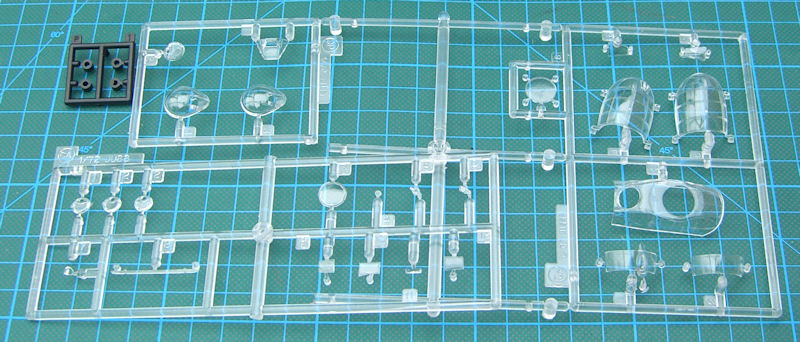 Im stabilen typischen Hasegawa-Stülpkarton gibt es nun neben der Bauanleitung und einem umfangreichen japanischsprachigen Vorbildteil 24 Klarsicht- und 133 Spritzgussteile sowie einen Decalbogen. Einige Teile wandern in die berühmte Restkiste.