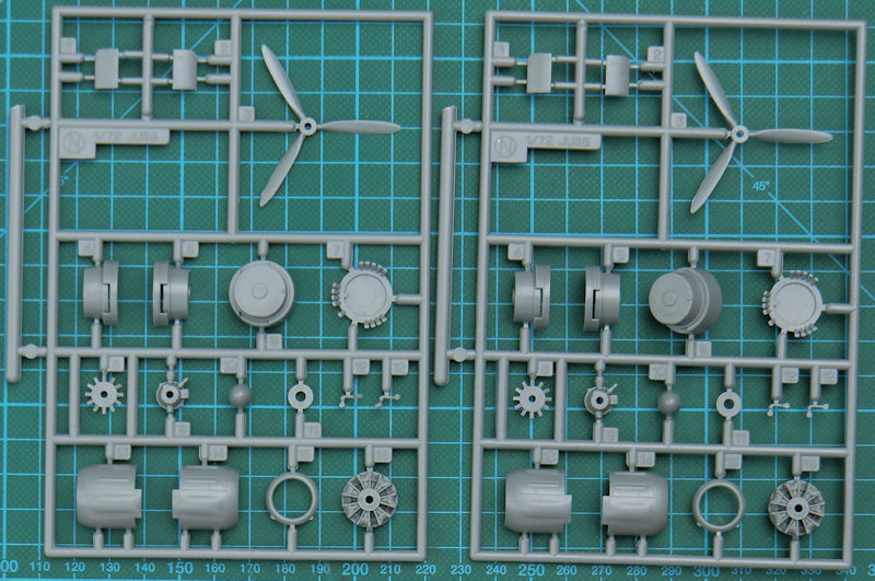 Je nach Version werden die Motorsektionen für den Jumo 213 oder den BMW 801 angeboten. Natürlich gibt es auch die passenden Luftschrauben. Die Sturzflugbremsen sind etwas zu klobig. Das bekommt man aus Kunststoff aber nicht besser hin.