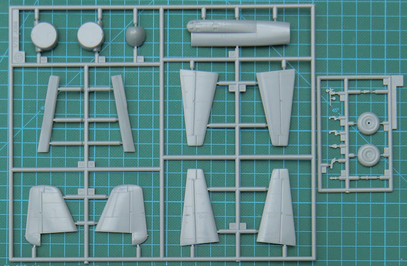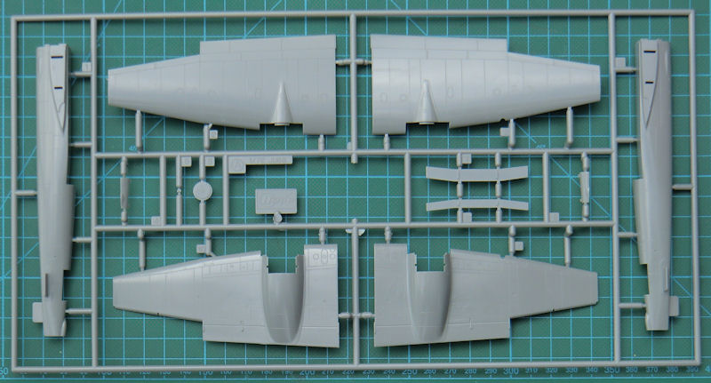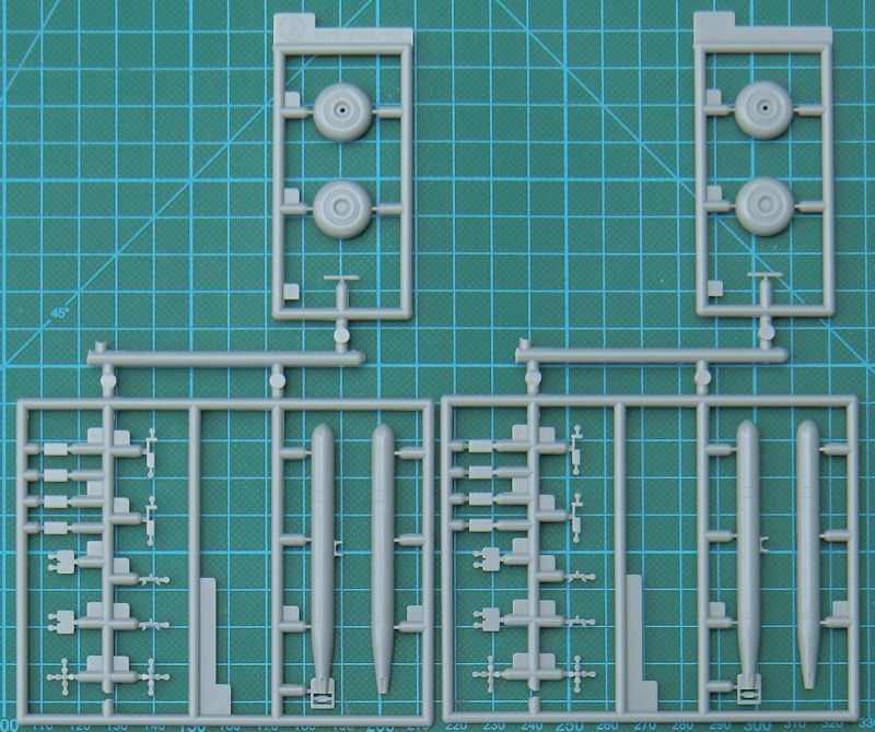 Die Ausführung der Teile ist tadellos. Typisch für Hasegawa ist das etwas simple Cockpit. Aber mit paar Sitzgurten kann dieses aufgewertet werden. Vor dem Zusammenbau der Tragflächen sind noch ein paar Bohrungen für die ETC's zu durchbrechen. Die beiden Torpedos bestehen aus je zehn Einzelteilen.