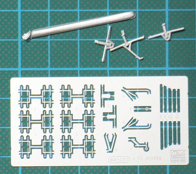 Als Halter für die geätzten Radarantennen des FuG 200 dienen drei Zinnteile und auch das Gehäuse des ToKG ist aus Zinn. Die Bemalungsanleitung ist sehr ordentlich und Hasegawa liefert für die Skizzen auch den Maßstab der Verkleinerung mit.