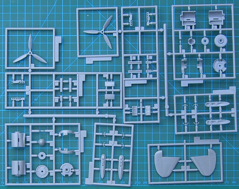 Einige Bauteile wandern in die Restekiste und ansonsten gibt es eine vorbildliche Passung und eine durchdachte Konstruktion. Erwähnenswert ist hier der Tragflächenholm. Wichtig noch: Die Bohrungen für die Justierung der ETC’s in der unteren Tragflächenhälfte nicht vergessen. Die Klarsichtteile verdienen ihren Namen. Sie sind klar und ausreichend dünn. Vorsicht beim Zusammenstückeln der Bugkanzel. Bei mir hat sich der neue Kleber von Revell gut bewährt.