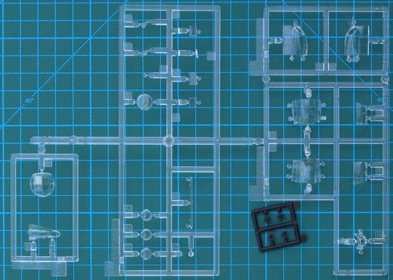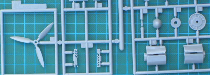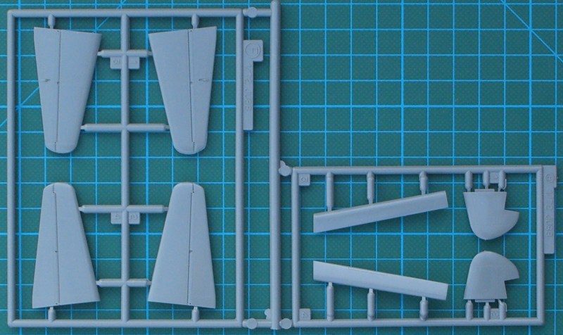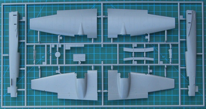 Bei der im Original auf Plexiglas aufgedampften Antenne, die sich auf dem Rumpfrücken befindet hat es sich Hasegawa nicht einfach gemacht. Sie besteht aus einem Spritzgussteil, einem Decal und einem separatem Klarsichtteil. Schöne Idee! Auch gibt es wieder Hauptholme, die die richtige Tragflächenmontage sicherstellen. Die Triebwerke sind auch sehr komplex und da die Tragflächenenden separat zu montieren sind, dürfte vielleicht auch irgendwann eine A-5 möglich sein. Die Decals sind natürlich versatzfrei auf hellblauem Trägerpapier gedruckt.