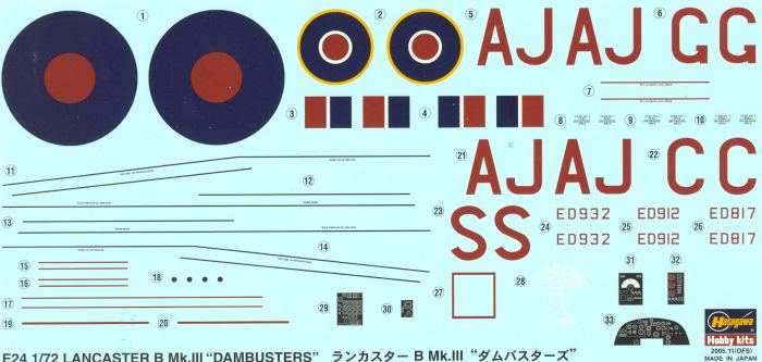 Bausatz: Hasegawa (in Deutschland über Faller)hat die Dambusters-Version als vollwertigen Bausatz herausgebracht und dieser wird dann auch etwas länger im Angebot sein. In meinem First Look über den "normalen" Bausatz bin ich schon auf einige Sachen eingegangen, die ich hier nicht noch mal wiederholen möchte. Zwei kleine Spritzlinge sind neu. Diese betreffen den neu gestalteten Waffenschacht der Dambusters. Die späten Luftschrauben hat Hasegawa auch ebenso weggelassen, wie die Klappen für den Bombenschacht, die nicht benötigt werden. Damit ist klar, dass nur eine der 19 Maschinen gebaut werden kann. Der Decalsatz wurde auch neu erstellt. Leider hat man den Schnitzer mit dem Instrumentenbrett (von der Manchester) wiederholt. Inzwischen gibt es ja von eduard ein Zoom-Set. Wer will, der kann noch für einen größeren zweistelligen Eurobetrag Zurüstsätze verbauen.