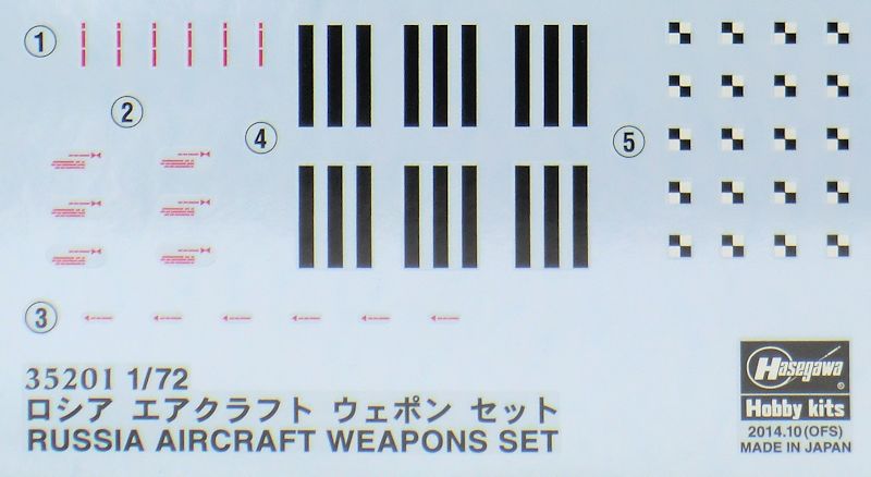 Hasegawa hat für die verschiedenen Bausätze in 1/72, die sowjetische/russische Vorbilder haben, ein Waffenset herausgebracht.