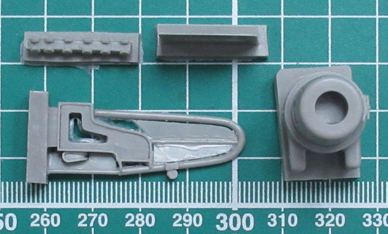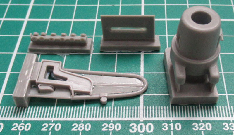 Der Resinguss ist tadellos und die Angüsse sind sinnvoll gewählt. Das Rohr ist an der Mündung hohl gegossen. Der Bau beginnt mit der Verbindung von Rohr und Verschluss. An der Wiege werden einige Verkleidungen mit Fotoätzteile hergestellt. Das Handrad wird mit einem Rundmaterial mit dem Durchmesser 0,75mm versehen.