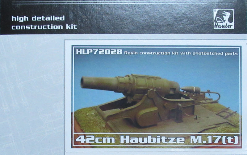 Bausatz: Bekanntlich hat Brengun/Hauler den Zugriff auf die Urformen von ExtraTech und so ist es kein Wunder, dass nach und nach immer wieder Produkte unter neuem Label erscheinen. Offensichtlich ist nach fast 15 Jahren auch ein Bedarf für die 42cm Haubitze M. 17(t) in 1/72 da. In einer ansprechenden aber unpraktischen Schüttbox befinden sich sehr gut verpackt acht Resinteile, zwei Fotoätzteilbögen, ein Decalbogen und die Bau- sowie Bemalungsanleitung.