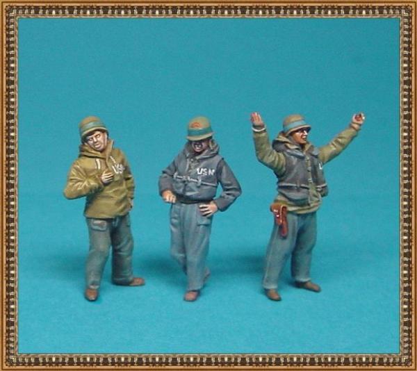 Während zwei Figuren unmittelbar an einem abgestellten Trägerflugzeug eingesetzt werden könnten, fällt die dritte etwas aus dem Rahmen. Sie stellt einen Lande-einweiser dar, der mit ausgebreiteten Armen und zwei Paddeln, die aus roten und gelben Stoffstreifen bestehen, dem einschwebenden Piloten seine Fluglage anzeigt.