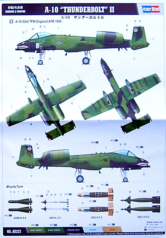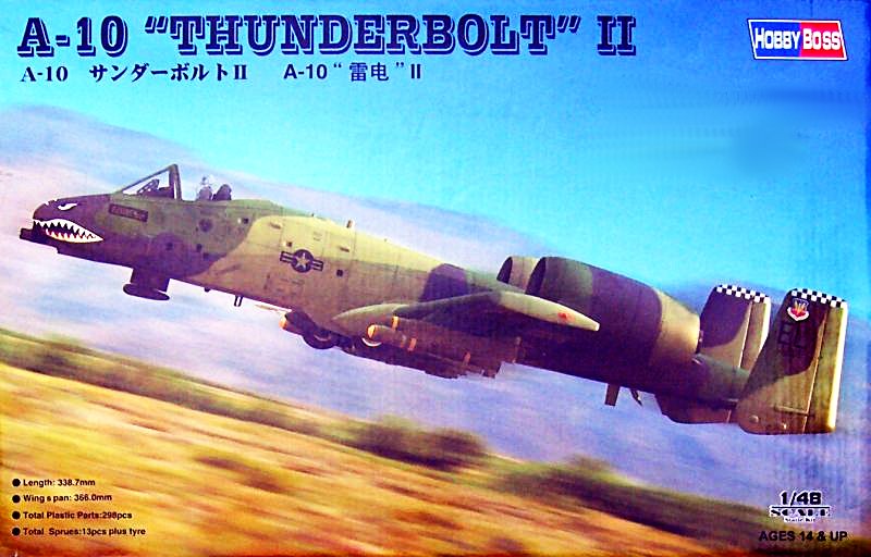 Vorbild: In den 60er Jahren erfolgten bei verschiedenen Unternehmen in den USA Untersuchungen für ein Close Air Support (CAS) aircraft. Anfang 1970 wurden die Gebote auf die Ausschreibung eingereicht. Am 18. Dezember 1970 wurden Fairchild-Republic mit der A-10 und Northrop mit der A-9 ausgewählt. Beide erhielten finanzielle Unterstützung, damit die Prototypen gebaut werden können. Der erste Prototyp der A-10 flog erstmals am 10. Mai 1972. Schon am 18. Januar 1973 wurde die A-10 zum Sieger des Wettbewerbs erklärt. Man beschrieb das Flugzeug als „aircraft built araund a gun“. Es war schlichtweg zweckmäßig um eine 30 mm Gatling Kanone herum konstruiert worden. 1350 Schuss konnten mitgeführt werden und das bei einer theoretischen Feuergeschwindigkeit von 4000 Schuss / Minute. Weiterhin ist die A-10 in der Lage ca. 8 Tonnen Außenlasten zu befördern. Die Produktion begann 1975 und bis zum Ende wurden immerhin 715 Exemplare der A-10 gebaut. Um 1990 herum wollte die USAF die spezialisierte A-10 durch die F-16 ersetzen. Dann kam der Einsatz zur Befreiung Kuwaits und die A-10 konnte voll ihre Stärken ausspielen. Danach war von einem Ersatz durch die F-16 keine Rede mehr. Bis zum Jahr 2020 wollen die USAF sowie die Reserveeinheiten und die Nationalgarde die A-10 noch fliegen.