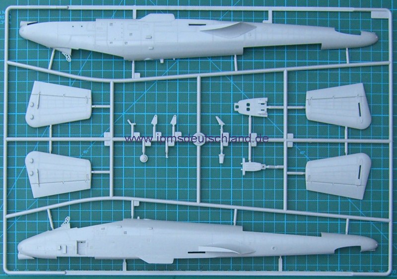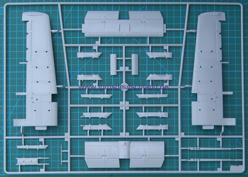 Dieser Bausatz ist offiziell noch nicht auf dem Weltmarkt verfügbar, jedoch handelt es sich hierbei um einen serienmäßig gefertigten. Nach dem Öffnen der stabilen Verpackung kommen Bauteile ohne Ende ans Licht. Ein paar Kleinteile, Gummireifen und die Kanzel sind in einem separaten Karton verpackt. Die Bauteile sind fein graviert und zeitgemäß (wer es mag) mit versenkten Nieten versehen. Immerhin sind es 298 an der Zahl. Für die Bemalungshinweise gibt es einen farbig beidseitig bedruckten A3 Bogen. Die Bauanleitung ist ein Faltblatt, welches nur unhandlich, ansonsten aber sehr übersichtlich ist. Das Cockpit ist eine Schau und die Gatling ist schon ein Bausatz für sich!
