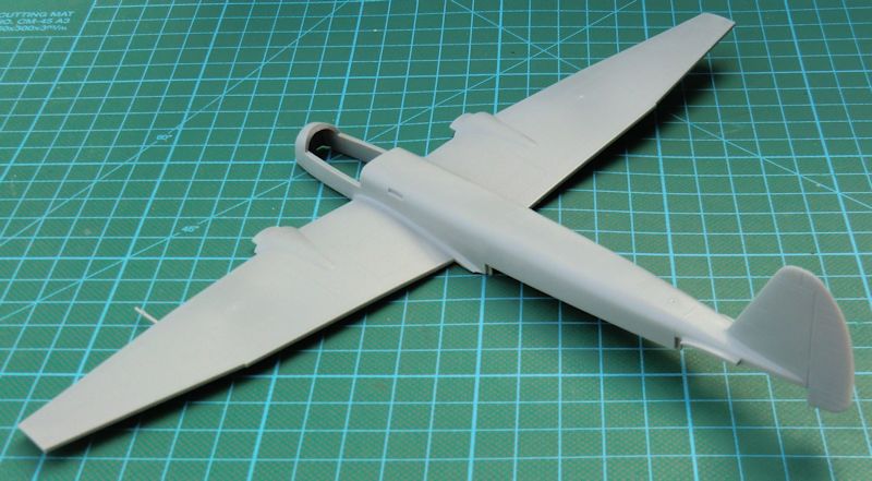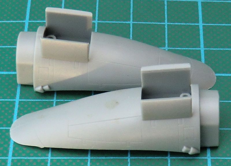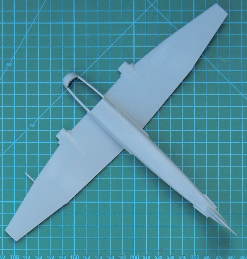 Der Aufbau des Bausätzes lässt diesen sehr schnell auch für Anfänger geeignet scheinen. Die Motorgondeln entsprechen nicht unbedingt dem Original. Hier sind andere Hersteller aber auch nicht besser gewesen. Das Cockpit entsteht aus wenigen Teilen. Der Aufbau der Großbauteile ist genial gelöst. Es gibt scharfe Hinterkanten an allen Rudern. Interessant ist die große Cockpitverglasung. Hier hat HobbyBoss eine sehr vorbildähnliche Form in einem Stück hinbekommen. Die Gondel unterm Bug besteht aus einem Stück Klarsichtmaterial. Das Fahrwerk sieht sehr ordentlich aus. Hier hat man in China einen guten Job gemacht. Die Hauptfahrwerksklappen sind stark vereinfacht und viel zu dick.