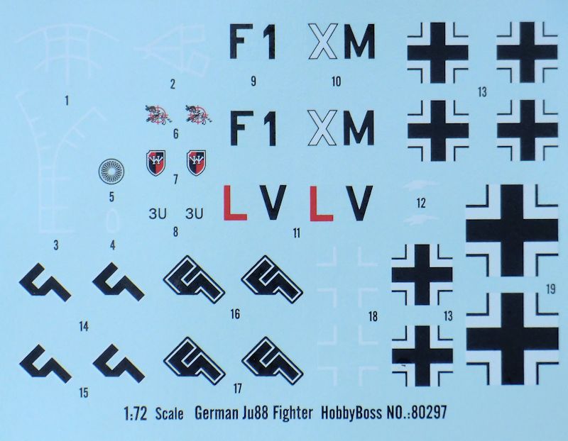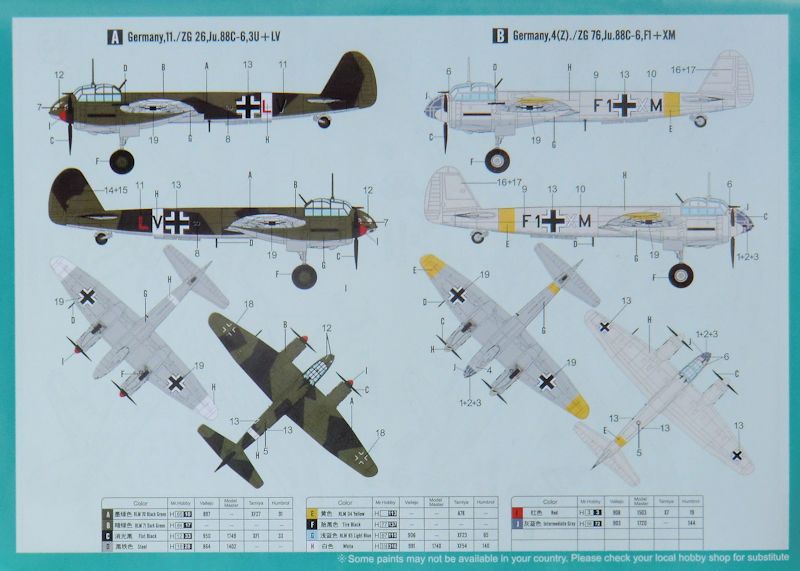 Die mehrfarbige Bemalungsanleitung ist gut gemacht. Da es nicht zu viele Decals auf dem tadellos gedruckten Bogen gibt, reichen auch diese etwas zu kleinen Zeichnungen. Die Farbangaben sind für die Systeme von Mr.Hobby, Vallejo, ModelMaster, Tamiya und Humbrol.