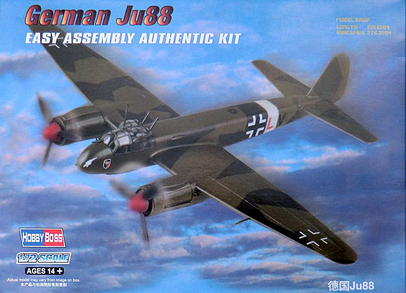 Vorbild: Die Junkers Ju 88 entstand auf der Grundlage der Ausschreibung des Reichsluftfahrtministerums (RLM) vom Oktober 1935. Gefordert wurden damals u.a. eine Höchstgeschwindigkeit von 500 km/h, Reichweite 1000 km und Bombenlast 500 kg. Junkers beschritt bei der Entwicklung der Ju 88 technologisches Neuland, denn das neue Flugzeug entstand in Glattblech-Schalenbauweise. Der Erstflug der Ju 88 V1 erfolgte am 21.12.1936 und wurde von DB 600 Motoren angetrieben. Ab der V5 wurden Jumo 211 Motore eingebaut. Die erste Serienversion war die Ju 88A-1 mit Jumo 211B. Die Ju 88A-3 war die Schulversion der A-1. Als nächste Einsatzversion folgte die Ju 88A-5, die schon eine vergrößerte Tragfläche hatte. Es folgte die A-4 ab Mitte 1940, die modifiziert bis 1944 gebaut wurde. Deren Höchstgeschwindigkeit mit voller Bombenlast betrug 475 km/h.