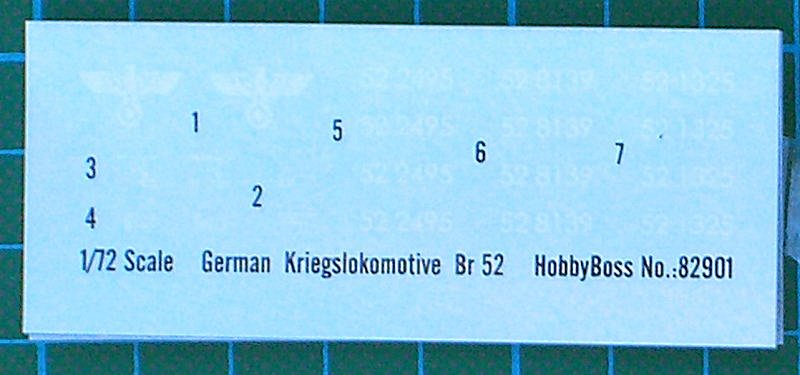 Die Decals (Abziehbilder) sind nicht gerade umfangreich. Über den großen Adler streiten sich die Geister. Bei mir waren noch Gleise (Kat.-Nr. 82902) enthalten. Diese ermöglichen erst die Präsentation dieses eindrucksvollen Bausatzes!